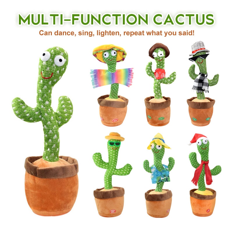 🌵Rechargeable And Cell Operated ( Both Variations available) , Select correct variation🌵 Update Dancing cactus plush toy: This toy comes with many different songs, mimicking, repeating and much more lovely and funny options. 🌵 High-quality Material: This Dancing Cactus Toy uses non-toxic and harmless soft plush fabric, the fabric is comfortable and will not cause any harm, and children can play with confidence. The bottom of the rechargeable cactus toy is plastic, so it can stand firmly on the table. 🌵 Artistic Design: cactus plant toy is designed with a cute cactus shape, and its unique creative design looks great. The Variant may play low number of song🌵Properties: Cactus Plush Toy is small in size and light in weight, very convenient to carry around.🌵Children perfect Partner: This rechargeable dancing cactus talking, will sway and sing cheerful songs, the best birthday/Christmas gift for children, friends and family.
