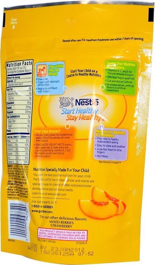 As your baby grows into toddlerhood, about 25% of his calories will come from snacks. Graduates yogurt melts snacks are a great way to make every bite count.