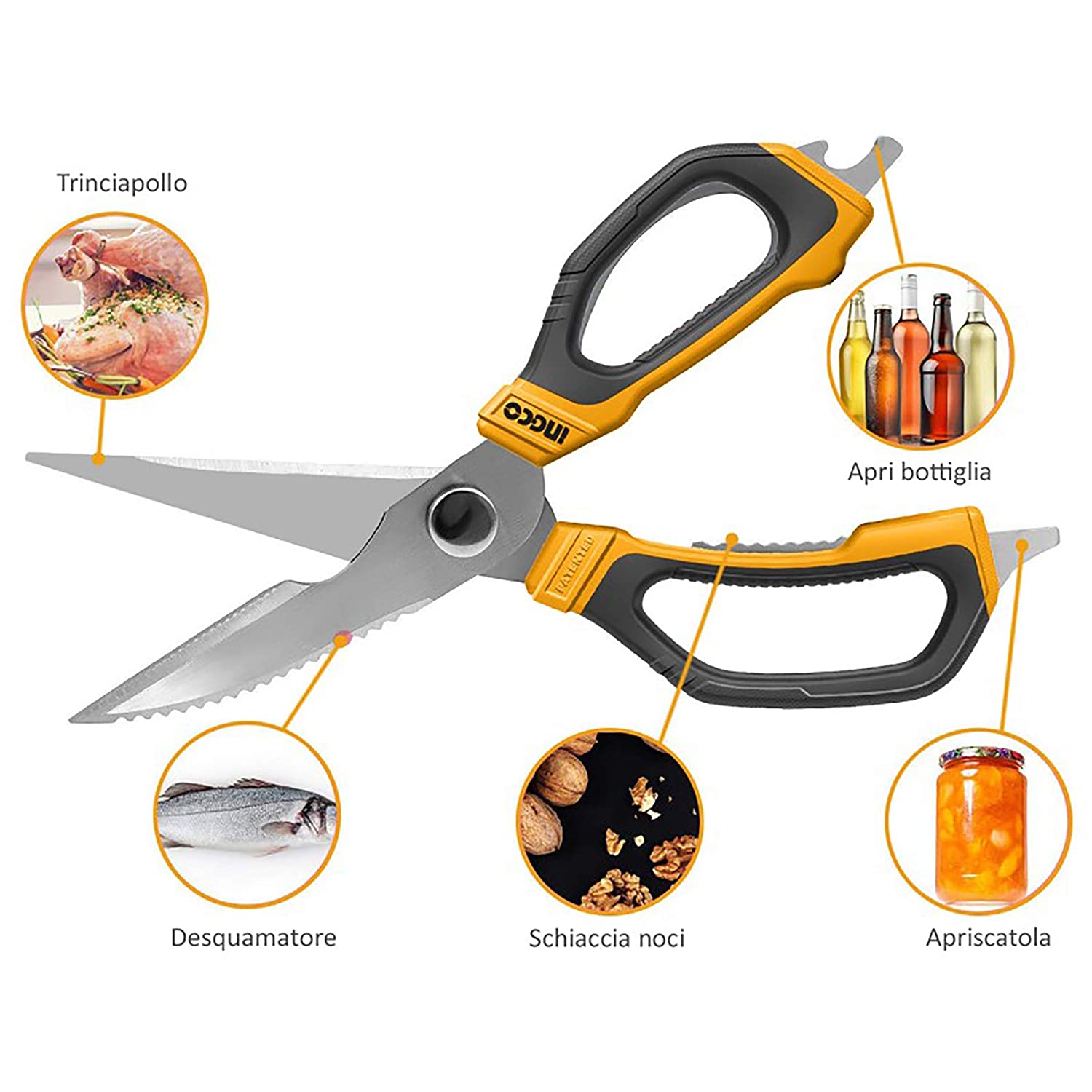 These are very strong good quality scissors for use in the kitchen. They have the key attribute that you can detach the two halves for washing. The handle are rubberized and strong.